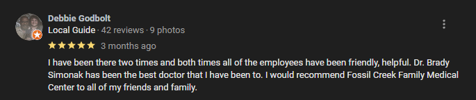 The team at Fossil Creek Family Medical Center strives to provide quality medical care in a pleasant, efficient and friendly atmosphere.